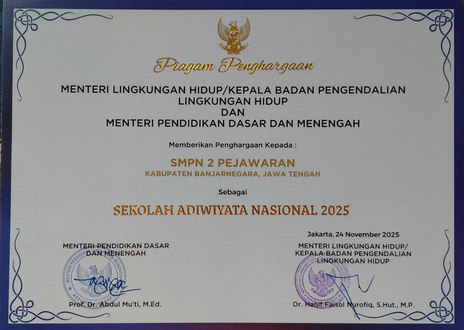 Penerimaan Penghargaan Adiwiyata Nasional